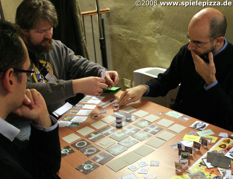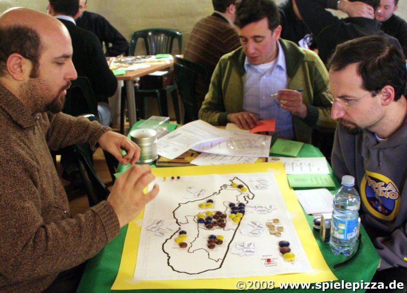 IDEAG 2008- Spieleautorentreffen in Italien![]() Die IDEAG ("Incontro DEgli Autori di Giochi", dt. "Treffen der Spieleautoren") ist die zentrale italienische Veranstaltung für Spieleautoren. Während des Wochenendes (am 12.-13.01.2008 in Piossasco, bei Turin, Italien) können die Teilnehmer ihre Prototypen anderen Autoren vorführen und diese testspielen lassen, wobei es die Atmosphäre der Kooperation miteinander erlaubt, wertvolle Hinweise für eigene Prototypen zu erhalten. Spieleprofis und Gelegenheitsspieler können sich ebenfalls an den Tests beteiligen, während zeitgleich zahlreiche italienische Verlage die vorgestellten Spiele evaluieren.